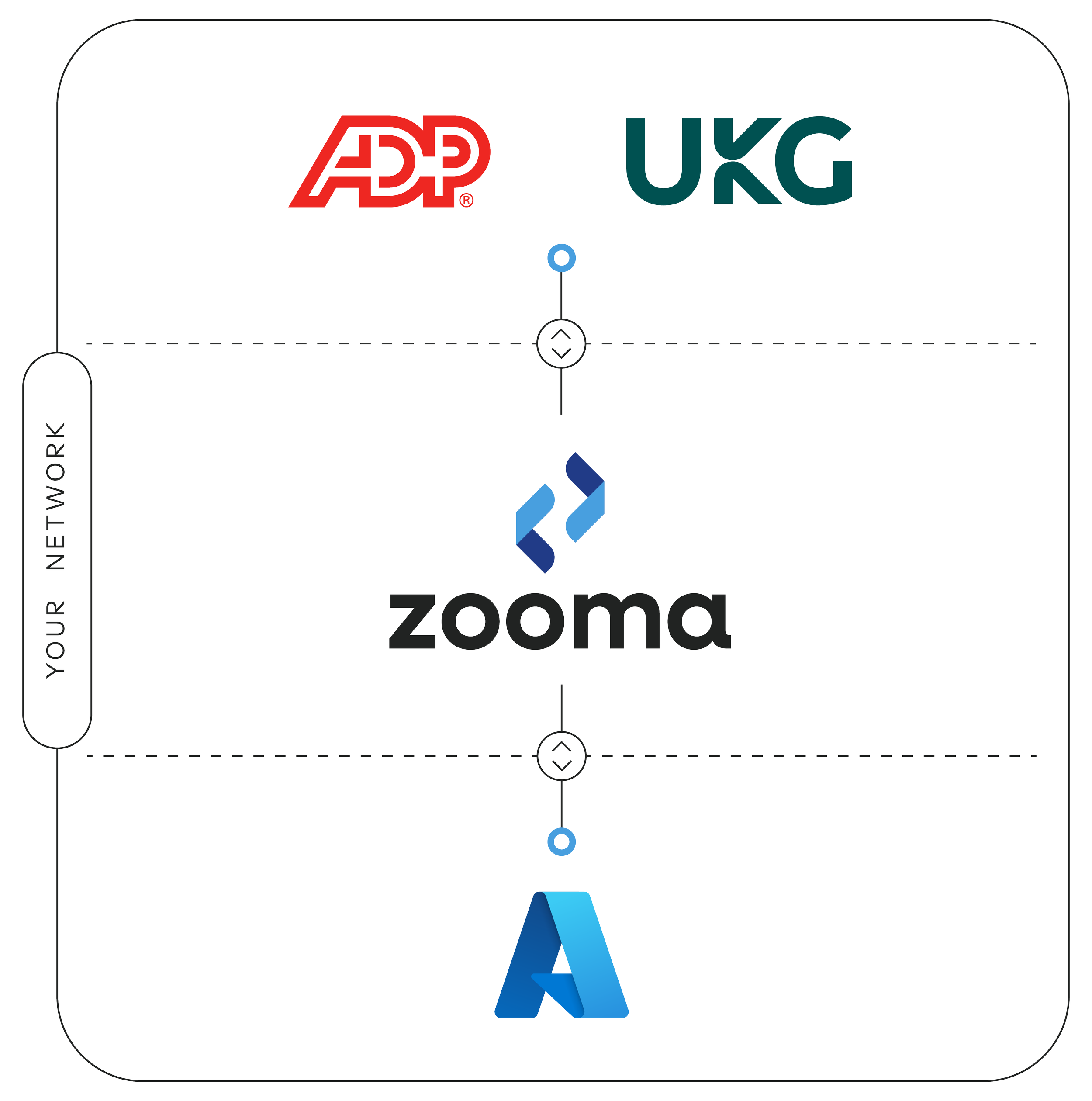Managing multiple systems increases your exposure to security and compliance gaps. Zooma centralizes your workforce data through our identity sync solution, so your employee data never leaves your network.